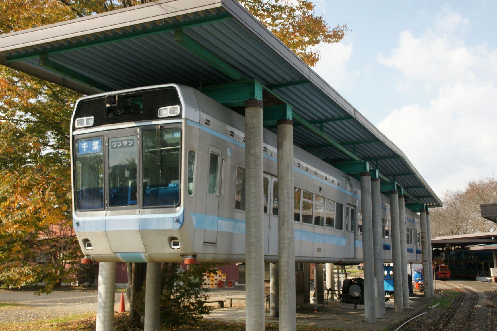 千葉都市モノレールの車両が現役さながらの姿で保存されています。